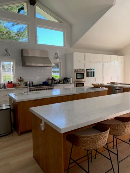 10-foot islands for hands on cooking and plenty of sitting for observation classes. We often spill into the front patio for relaxation and conversations. It is my private chef’s kitchen where we cook together and gather around for developing new friendships in our community.