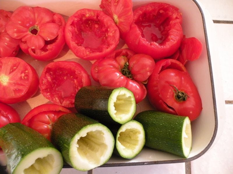 Wash and prepare your vegetables. Using a sharp knife scoop out the zucchini.